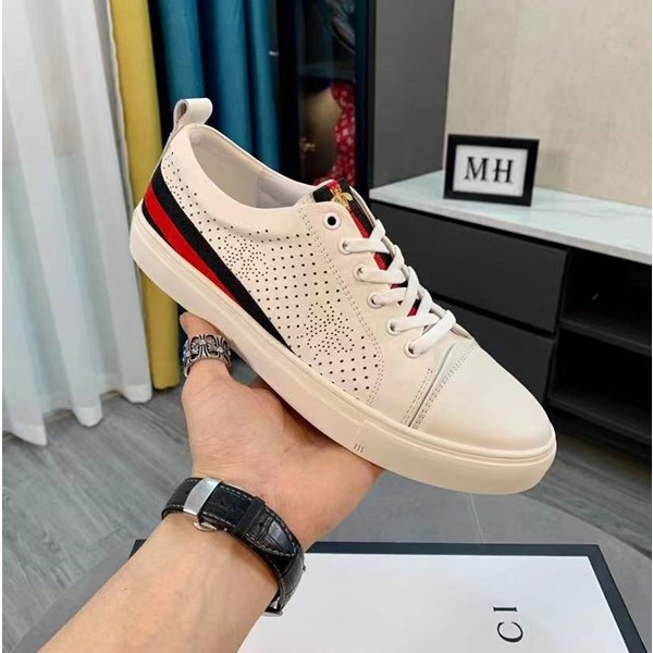 高仿古馳Gucci最新男士休閑鞋,半邊穿孔設計,鞋面選用進口頭層牛皮,真皮內裡,超精細做工,個性時尚橡膠耐磨大底,上腳輕巧舒適