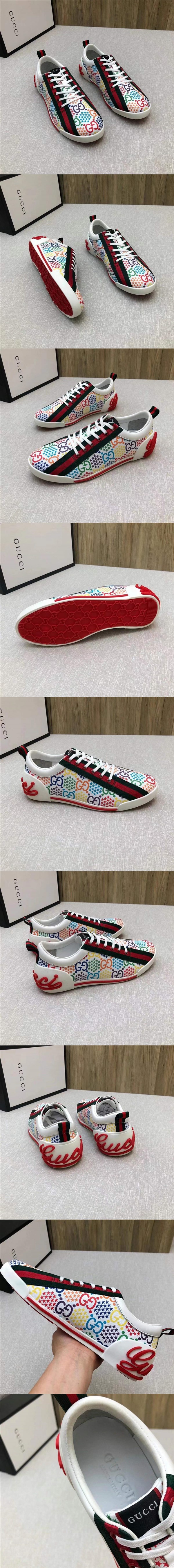古馳Gucci新款休閑運動鞋,高質量進口牛皮GG印花搭配透氣網佈,水染牛皮內裡,鞋底:原版底超級舒適#32