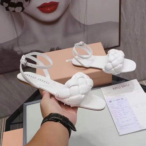 高仿Miumiu夏季新款平底休閑涼鞋,不僅穿的舒服而且很輕 鞋面用皮編織,紋路飽滿可愛,配搭休閑服飾,牛仔運動裝都可以駕馭