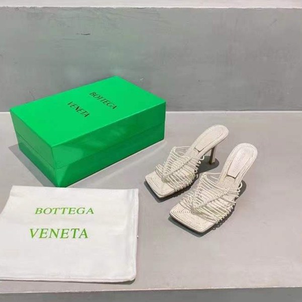 高仿Bottega Veneta21新季草編方頭穆勒高跟涼鞋,自重無敵輕+辨識度超高