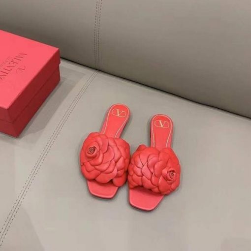 華倫天奴Valentino21夏季新款女士時尚休閑花朵系列拖鞋,鞋面:羊皮,內裡:混種羊皮 ,真皮大底#459